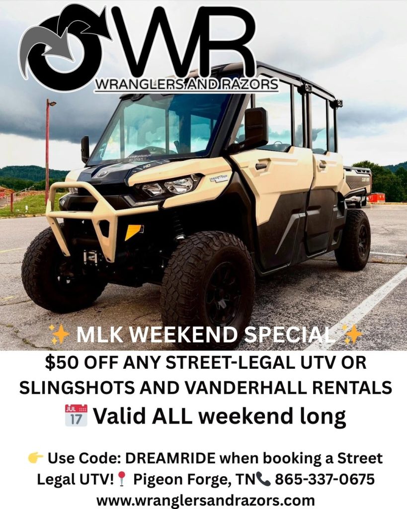 Did you know that every vehicle rental with Wranglers & Razors in Pigeon Forge comes with a free National Park “Park It Forward” pass? This pass is required for parking along hiking trails, viewing stations and many other sites in the Smoky Mountain National Park territory and we are happy to provide it to all our guests.