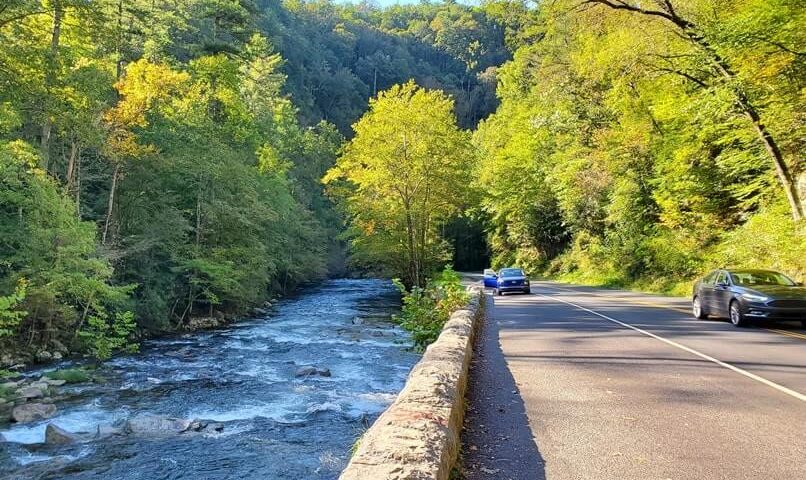 August 15, 2025Newfound Gap Road travels for 33 miles from Gatlinburg, Tennessee, to Cherokee, North Carolina. The reason why visitors love this scenic drive so much is because it allows them to experience a little bit of everything the park has to offer. It typically takes about an hour to drive, depending on traffic, of course. The drive includes plenty of opportunities for you to stop and enjoy the scenery. Start your driving tour at the Sugarlands Visitor Center, where you can buy a Newfound Gap Road driving tour booklet to learn more about what to expect along your drive.